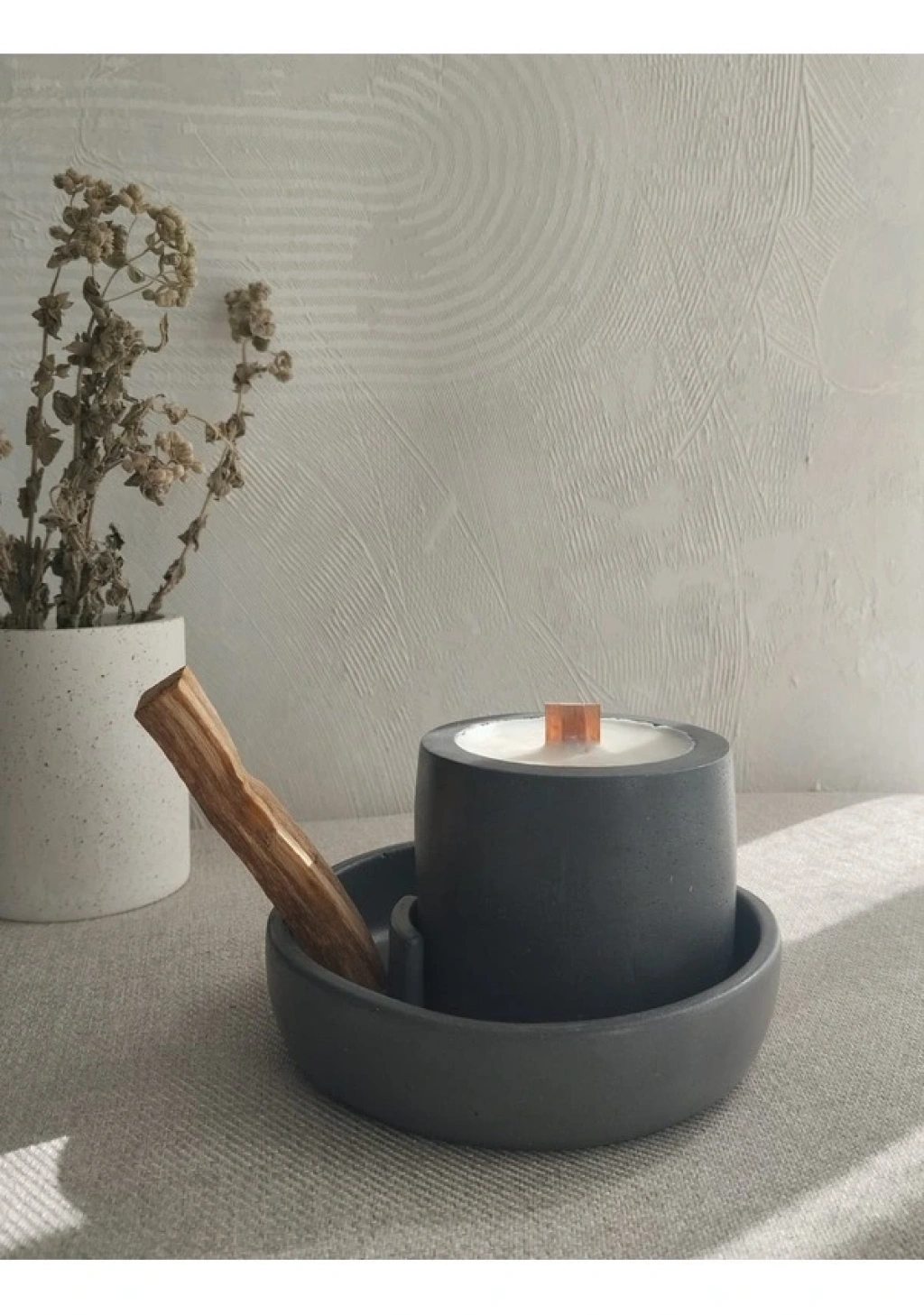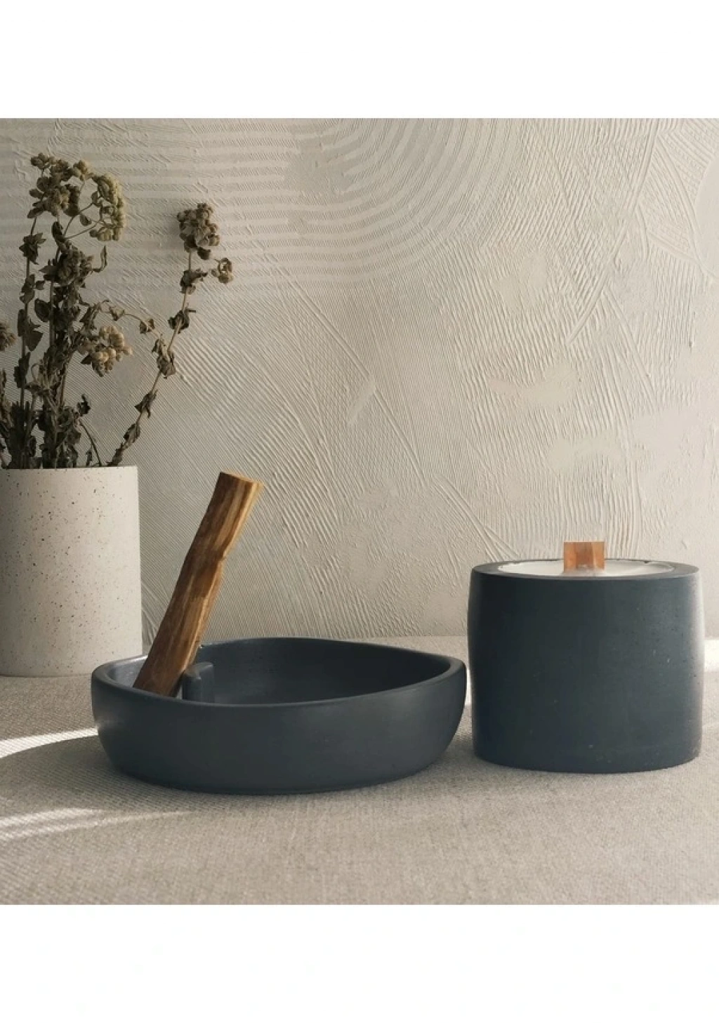El yapımı beton mumluk ve tütsülük setiyle sade, sıcak ve huzurlu bir atmosfer oluşturun.