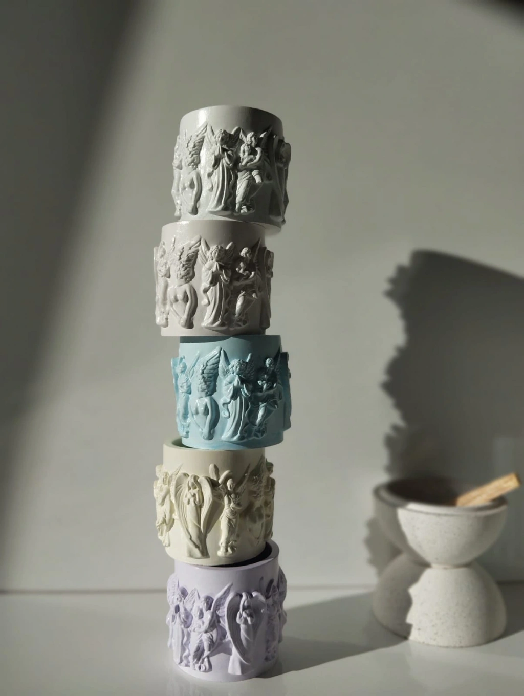 Soya mumları daha temiz, yavaş ve eşit şekilde yanarak evinize doğal bir atmosfer katar. Beton kap ise uzun ömürlüdür; mum bittikten sonra dekoratif bir obje ya da saklama kabı olarak kullanılabilir.